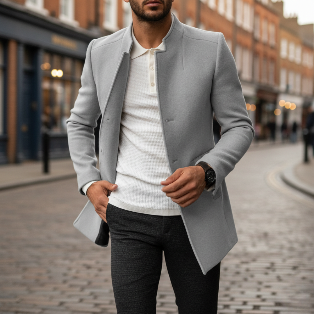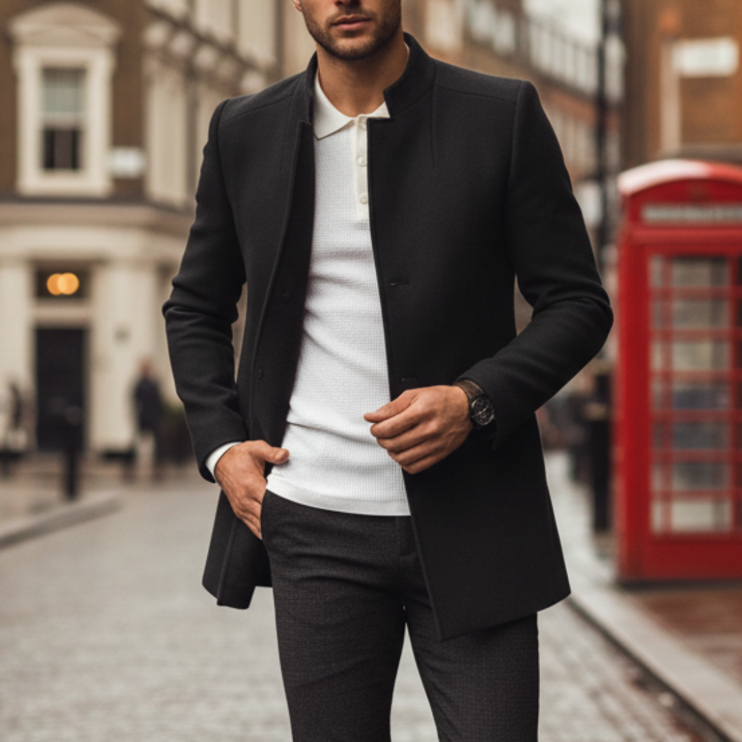 Step into modern elegance with the Alaric Tailored Urban Coat. Designed with a clean structured silhouette and minimalist front closure, this refined outer layer delivers a sharp profile with everyday comfort. The soft construction and streamlined neckline create a polished finish that transitions seamlessly from casual city wear to elevated evening styling. Perfect for cool-weather refinement, it’s a versatile staple for a contemporary wardrobe.