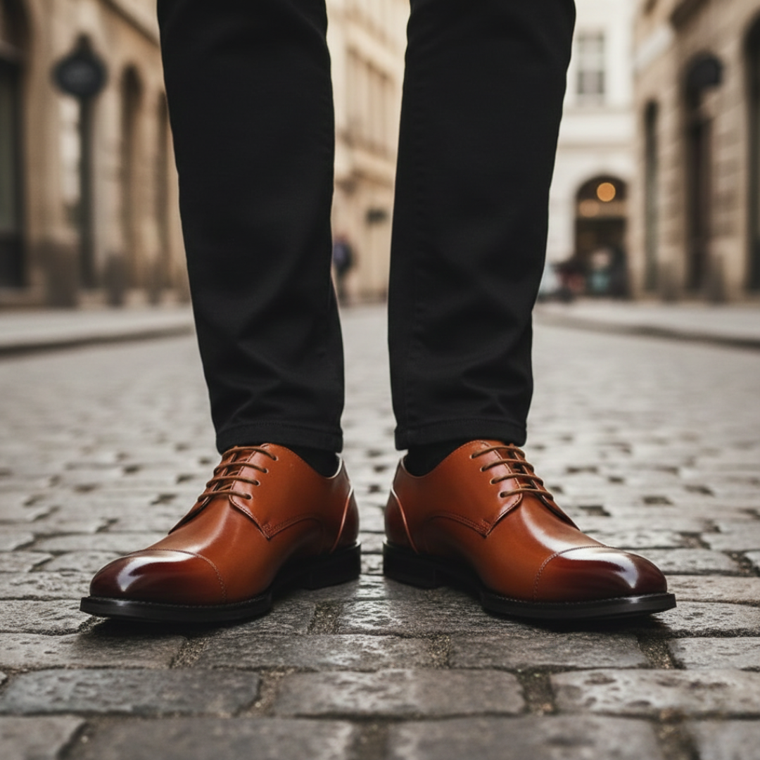 Refine your formal wardrobe with the Aurelius Leather Derby Shoe. Crafted with a smooth, polished finish and a classic lace-up silhouette, this design delivers understated sophistication for business, ceremonial, or evening wear. The structured shape and balanced proportions provide lasting comfort while maintaining a sharp, distinguished presence, making it a timeless essential for the modern gentleman.