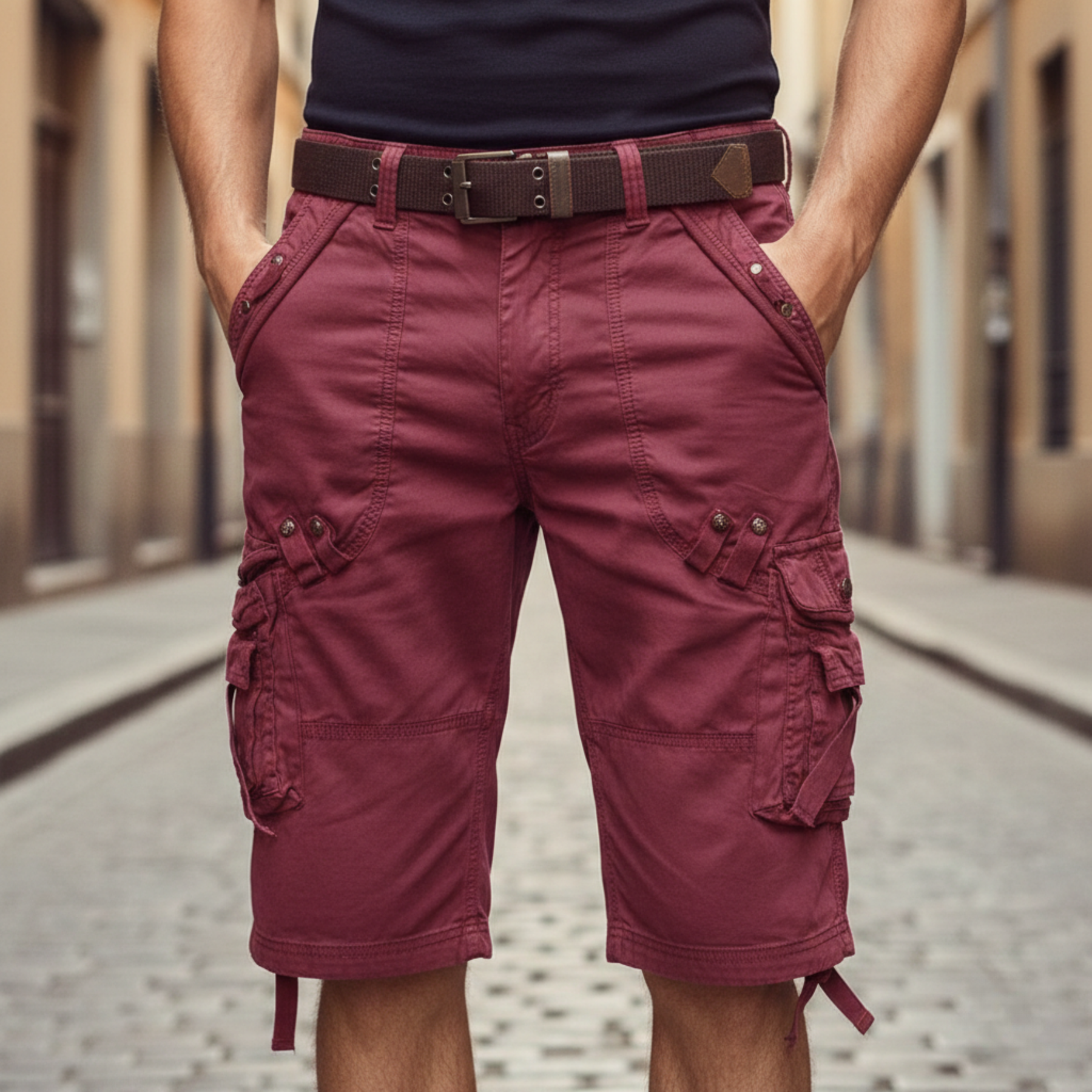 Cargo Shorts Multi Pocket Belted for Men