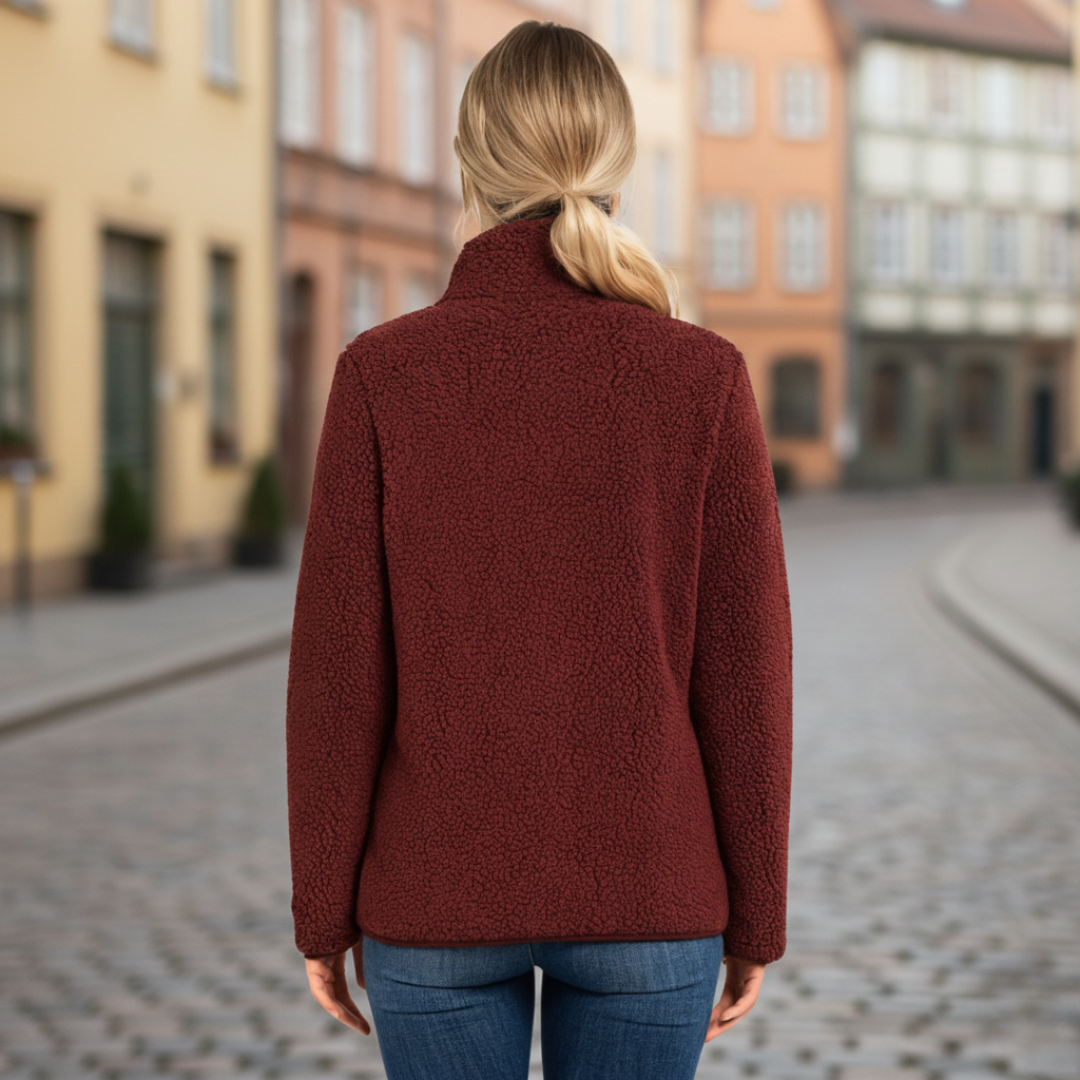 Wrap yourself in understated warmth with the Elara Sherpa Zip Jacket. Crafted with a soft, textured finish and a clean zip-front design, this piece balances cozy comfort with refined simplicity. The structured collar and streamlined silhouette make it ideal for layering through transitional seasons, offering a polished yet relaxed look for everyday wear.