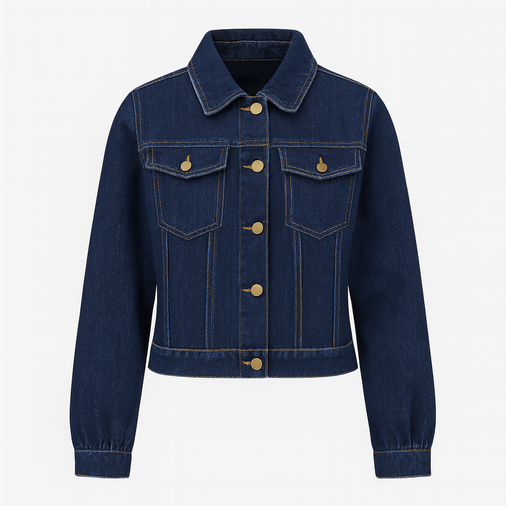 Timeless, versatile, and effortlessly cool, the Harper Classic Denim Jacket is a wardrobe essential that never goes out of style. Crafted from premium cotton denim, it offers a structured yet comfortable fit with clean lines and signature contrast stitching. Featuring button-flap chest pockets, gold-tone hardware, and a cropped length, this jacket pairs perfectly with everything from casual tees to dresses. Whether layered or worn solo, it brings a touch of classic charm to any look.
