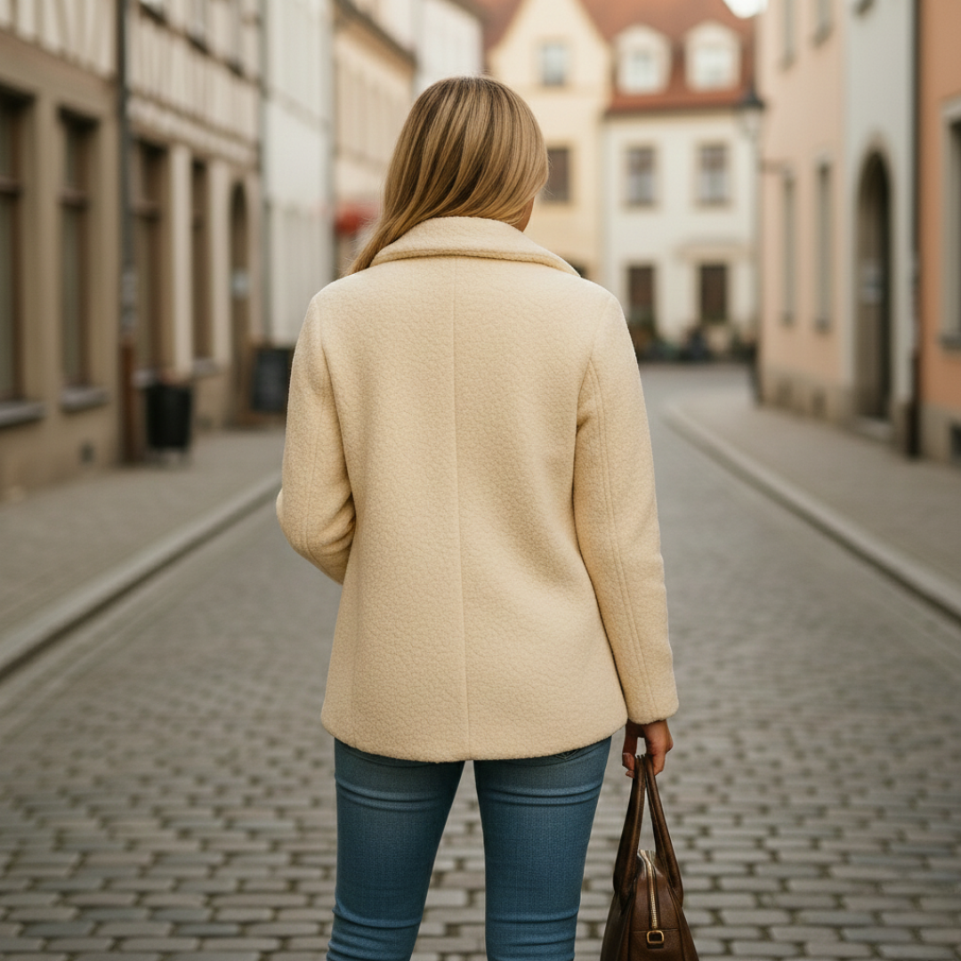 Wrap yourself in understated warmth with the Alina Sherpa Coat. Designed with a softly structured silhouette and a plush textured finish, this piece offers cozy comfort while maintaining a refined appearance. The double-breasted front and classic lapels lend a polished touch, making it an effortless choice for cool-weather layering and everyday sophistication.
